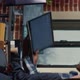 Vertical video Two software developers holding laptop with coding interface walking towards desk and sitting down talking about group project. Programmers team discussing algorithms pointing at computer screen.