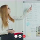 Video call interface. Teen school girl college student distance learning during virtual distance online lesson on video conference call with teacher studying at home