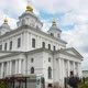 View of the House of the Kazan Convent in front of a cloudy sky. Timelapse