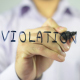 Young Man, Businessman, entrepreneur, creative designer, freelancer writes and draws on transparent wall : Violation