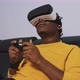 Virtual reality. African american black man playing games using VR headset and joystick. High quality 4k footage