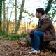 Autumn, Man Forest Sitting. High Quality Footage