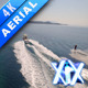 4K aerial clips. Young man wakeboarding on summer vacations. Aerial view.