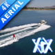 4K aerial clips. Young man wakeboarding on summer vacations. Aerial view.