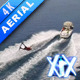 4K aerial clips. Young man wakeboarding on summer vacations. Aerial view.