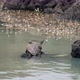 Here is a true natural habitat untouched. Turtles are diapsids of the order Testudines or Chelonii characterized by a special bony or cartilaginous shell developed from their ribs and acting as a shield. Northern slider turtles live in small groups. Spur-thighed tortoise sunbathing on a rock. Aquatic turtle red-eared map turtle pond mud lake puddle stream brook creek reptile mossy dirty terrapin, rocky lakeshore turbid water. 4K UHD 3840×2160 30p.