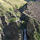 Aerial view of the waterfall. In the Trans-Ili Alatau mountains, Kazakhstan. Beautiful views of mountains and waterfalls. Video filmed during the summer, in the morning.