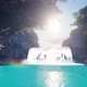 Beautiful waterfall, trees, rocks and a mountain lake with fresh water with fish and birds. Travel and adventure, amazing landscape of the lost land. Beautiful natural loop background.