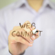 Man, Businessman, entrepreneur, freelancer, software engineer, programmer writes on transparent wall : Web Connect