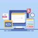 Concept of web development, web design, website coding, Programming language, html, php. Conceptual 2d animation video clip for web design and web development industry.