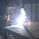 Welder Worker Hand Welds Metal Constructions. Workman In Workshop. Welding Process
