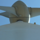 Close up shot of a wind generator against the blue sky.