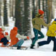 Kids competing in run with toboggans