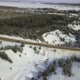 Drone aerial shot of a snowy winter village. Ultra HD 4K 3840×2160