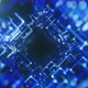 Fly through technology cyberspace with neon glow. Sci-fi flight through hi-tech technology tunnel. Hologram and neon light. 3d looped seamless 4k bright background. Data flow. Shallow depth of field