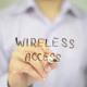 Man, Businessman, entrepreneur, freelancer, software engineer, programmer writes on transparent wall : Wireless Access