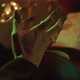 Witch cooking potion elixir close-up. Table with spellbook for making rite. Herbs, burning candles, crystal magic ball for sacrifice. Halloween theme, full moon, witchcraft.