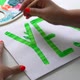 Overweight caucasian blonde young woman paiting green leaves on the word yes. Ecology concept.
