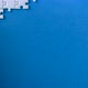 Gray puzzles stacked on blue background. Female hand is putting down one piece. Building of startup business processes concept. Communication and link in team. Achievement of goals.
