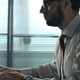 Side view of businessman keyboarding at computer in dark office