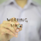 Man, Businessman, entrepreneur, stock trader, analyst or banker writes on transparent wall : Working Hours