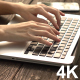 Woman working on computer at wooden desk. 4K / 25 fps 0:11 Sec..