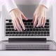 Woman typing on computer laptop in the workplace. 4K / 25 fps 0:13 Sec