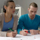 Group of developers at the desk scheming and drawing