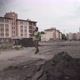 Working process. Contractor in working uniform control according to plan. Builder phone call and walking along construction site of new residential area. Foremant supervising construction.