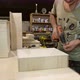 Caucasian grey-haired man and young adult woman assembling furniture. Working progress at carpenter workshop. Assembling of furniture drawers