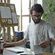 Young male man work in front of computer at his house, flat, stufio, loft or office. He is typing on keyboard and looks to his note book with sketches. Probably he is writer. copywriter, graphic designer, salesman or company employee. Also he could be freelancer, accountant, artist or author. At the moment he writes, types, calculates or analyze information. Also he can be working on project, communicating with client and customers or discussing online with partners or colleagues. Internet as wireless communication tool is very good for people who wants to work or study remotely.