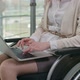 Woman typing on her laptop while sitting in wheelchair in the office center
