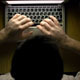Above-view of a man at the computer typing on keyboard