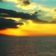 golden sunset over the sea as fluffy clouds pass by.