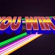 Digital animation of a You Win text appearing in the screen while colorful lines move in the dark background.