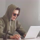 Young developer programmer concentrated on coding, trader looking at screen monitoring stock online