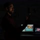 Young man giving a voice command to turn on the lights on a smart light app on his smartphone